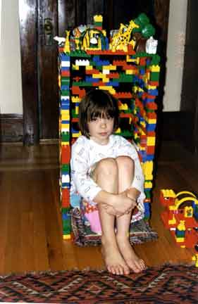 Hazel in a Duplo "house"