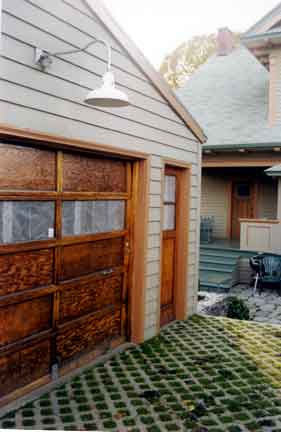 grass drive & garage doors, looking WSW from alley